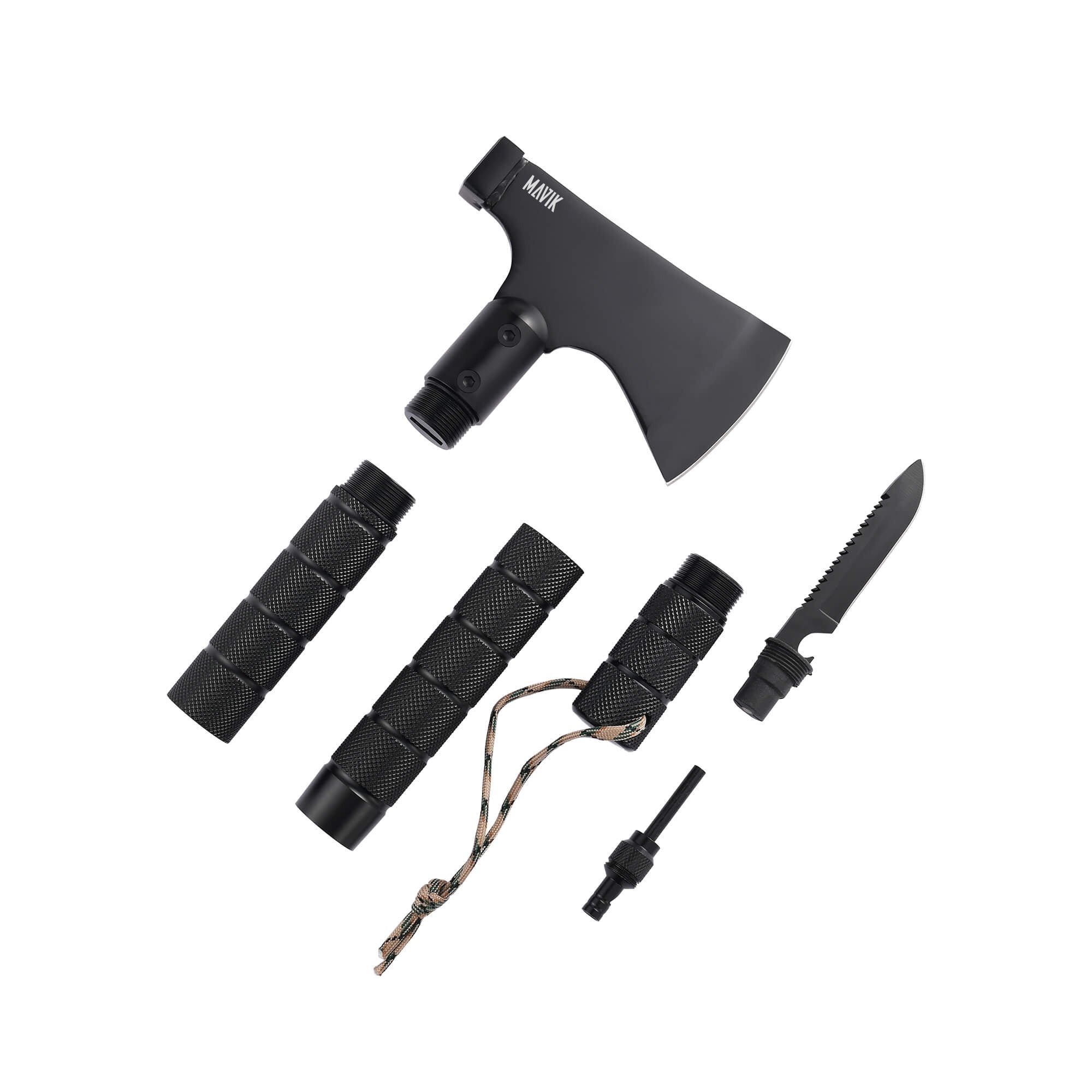 The Severe AX, is the ultimate multi-tool survival axe. The anti-slip handle allows for fierce use and at the same time, the hidden tools are the key to sustaining strong outdoors workmanship.